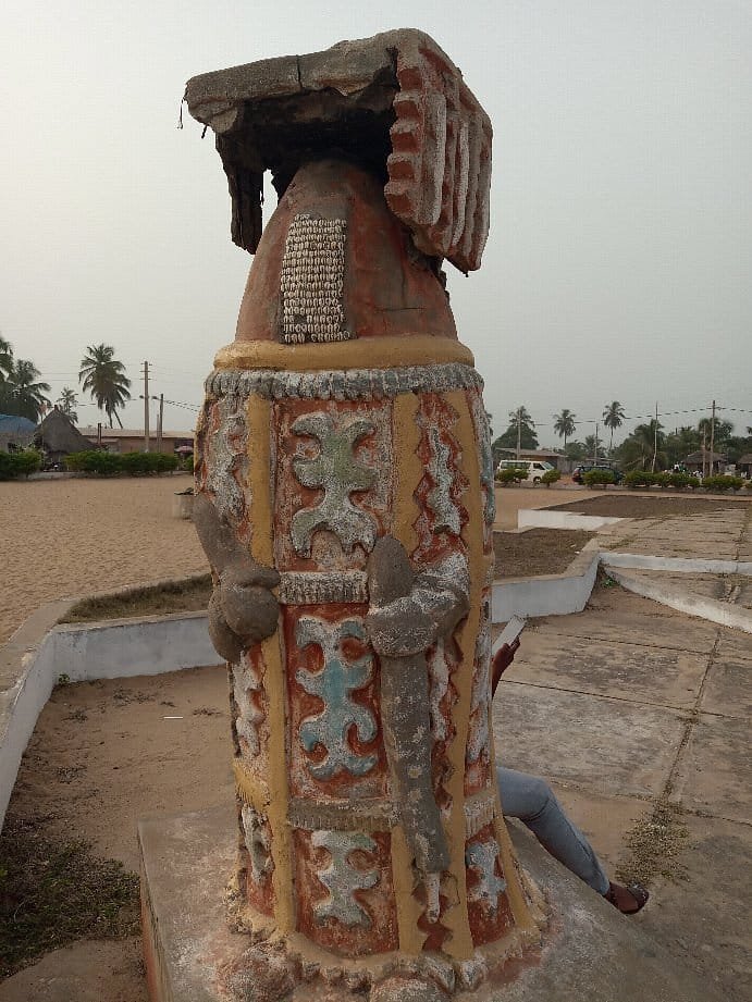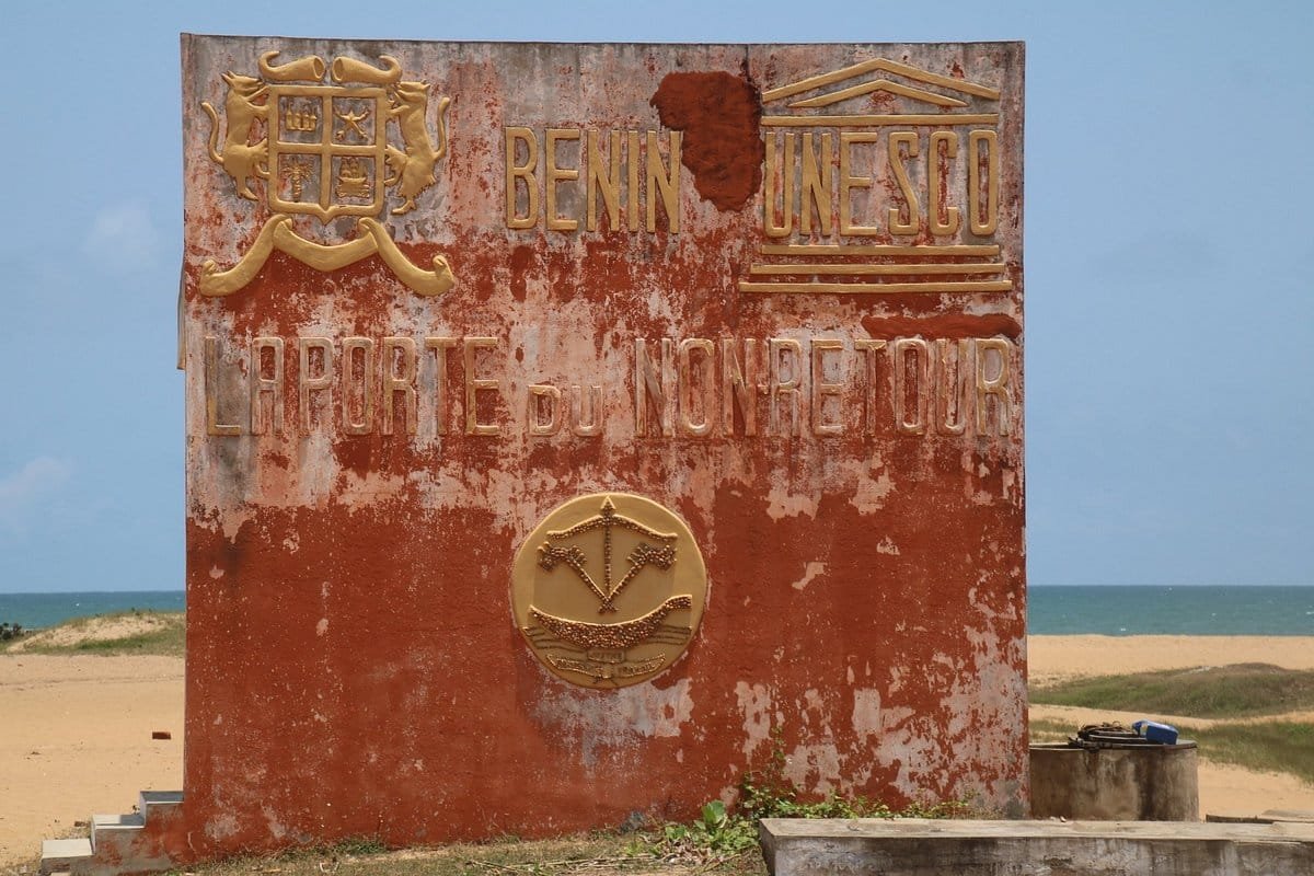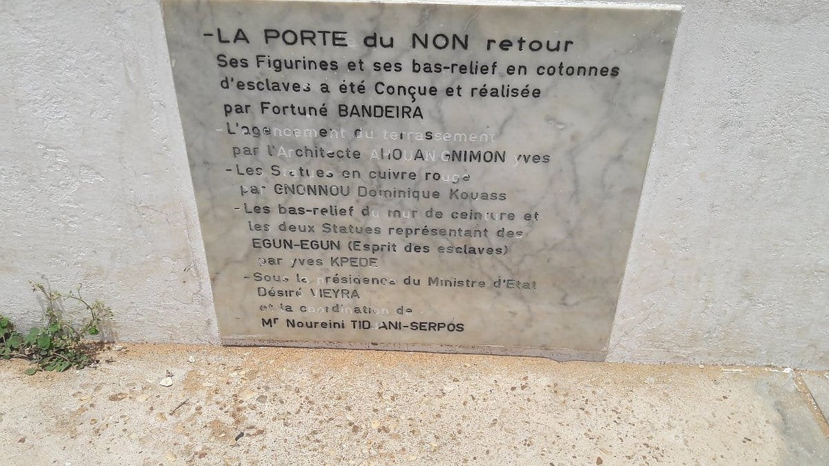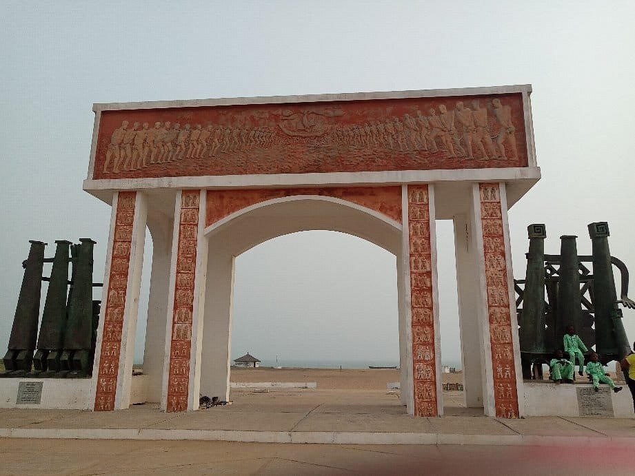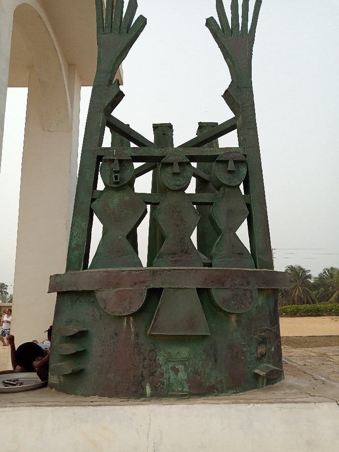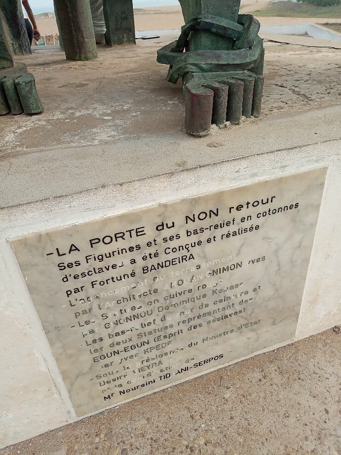 Après avoir franchi la longue route dite des esclaves depuis Ouidah , ceux-ci après avoir été plusieurs fois humiliés , pour leur ôter toute dignité , se retrouvent au bord de l'océan pour être transportés entravés et entassés ,dans les cales des navires négriers européens , en partance pour les Amériques .
