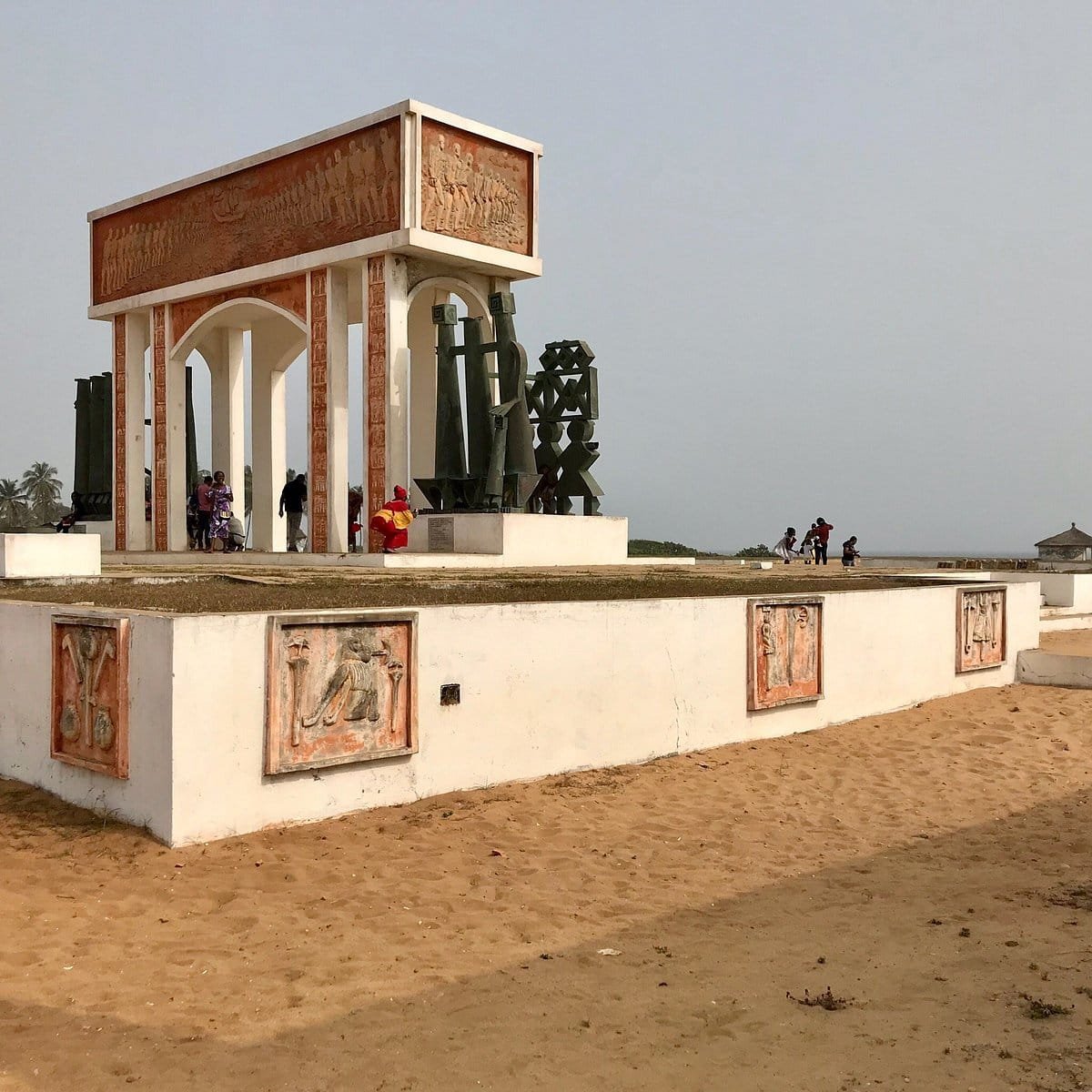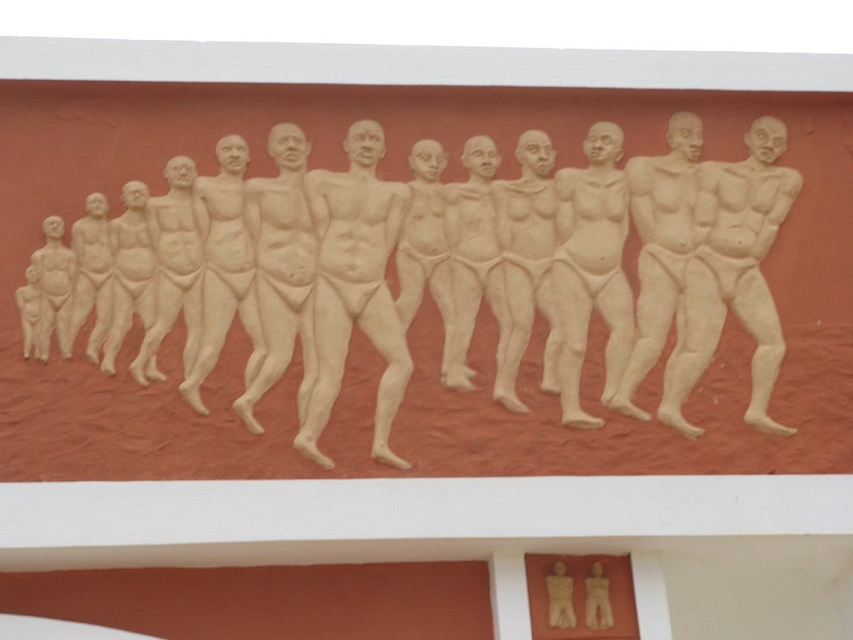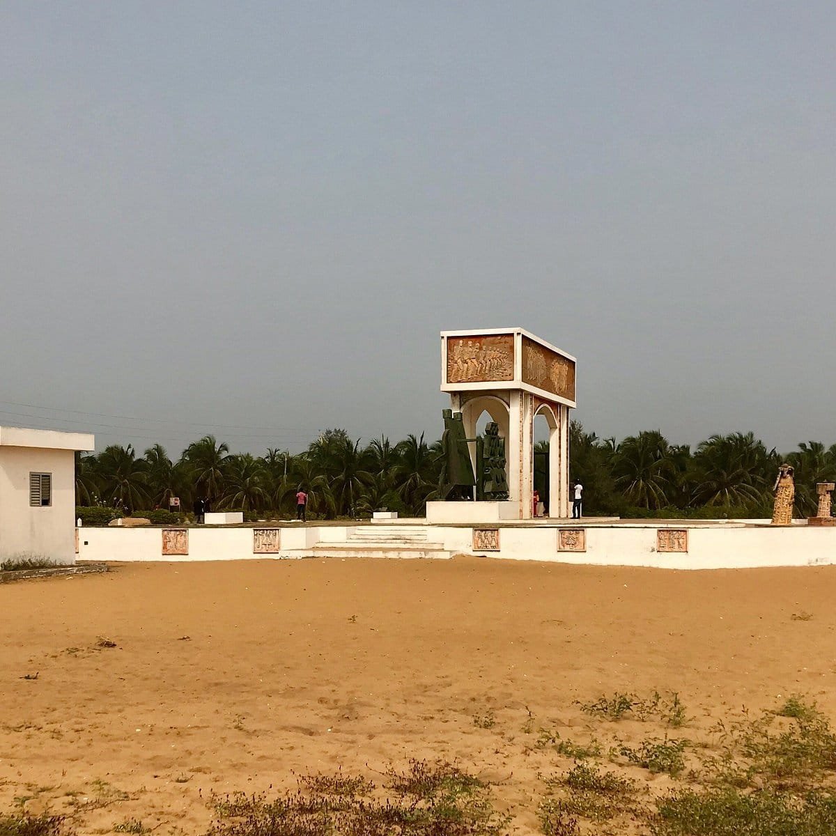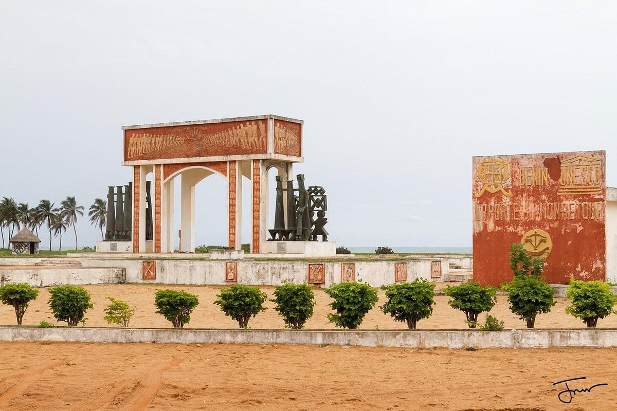 En 1995 , l'Unesco a fait ériger ce mémorial en forme d'arc bordé de sculptures témoignant des nombreux esclaves qui sont passés ici au nombre de plus d'un million .