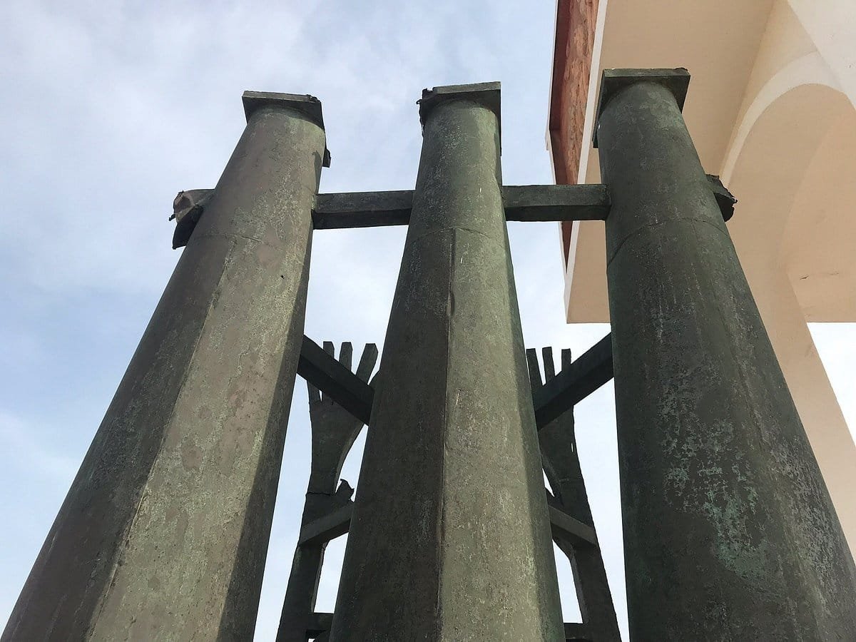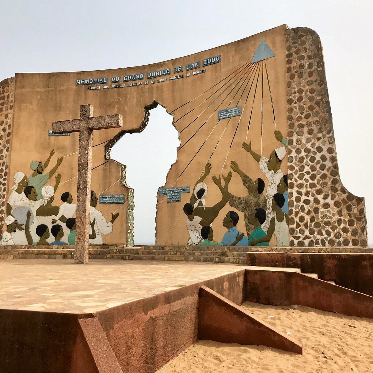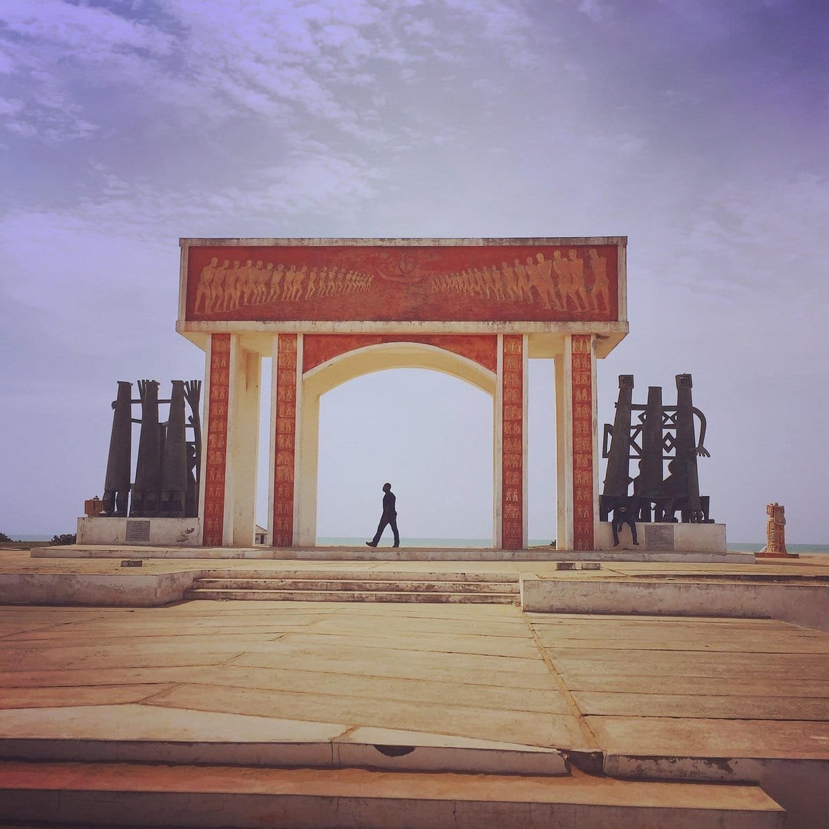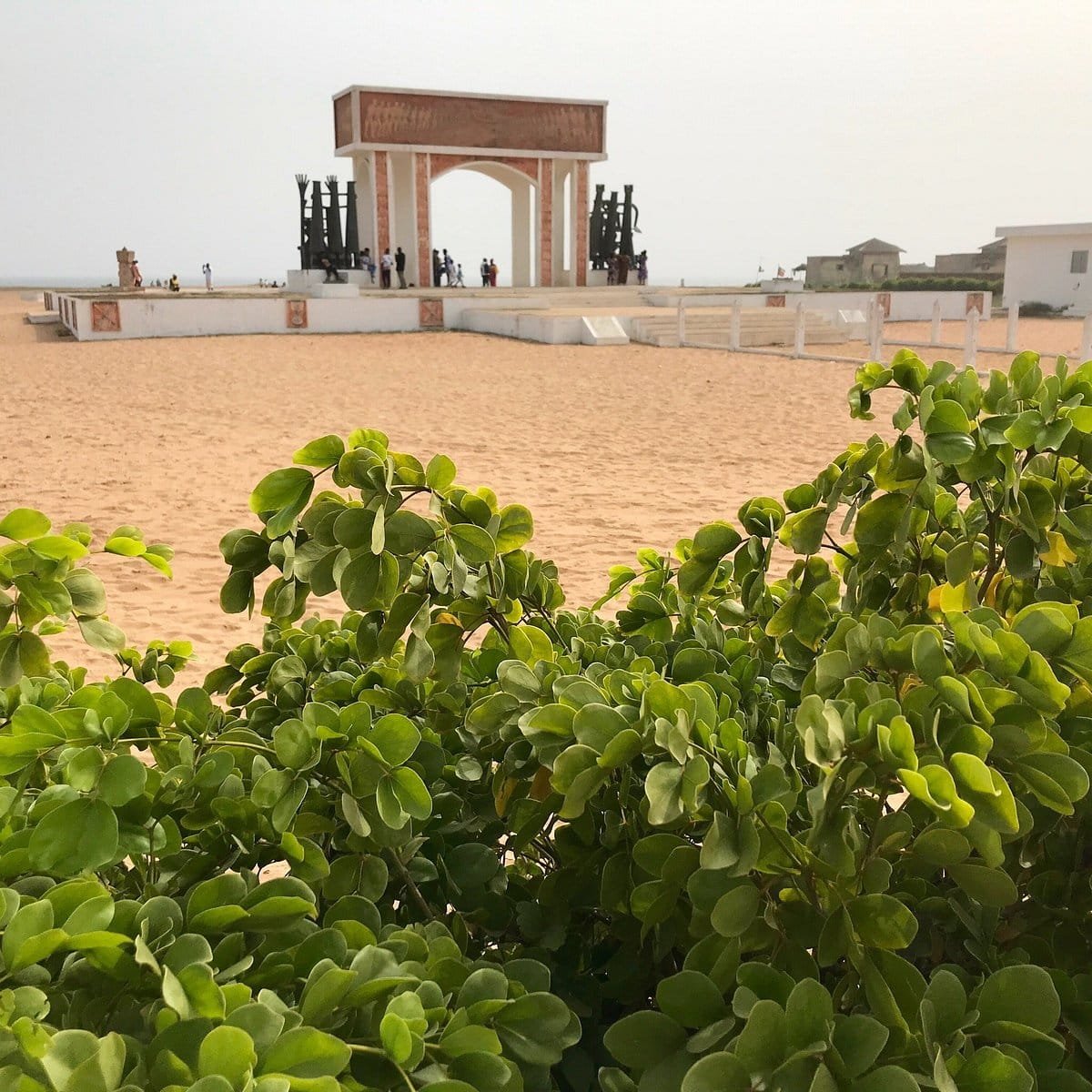En 1995 , l'Unesco a fait ériger ce mémorial en forme d'arc bordé de sculptures témoignant des nombreux esclaves qui sont passés ici au nombre de plus d'un million .